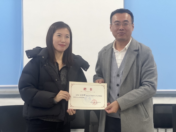 活动最后,我校心理健康教育中心主任郭双代表中心,向刘洪伟老师颁发心理督导师聘书,正式聘任其为中心心理督导师。