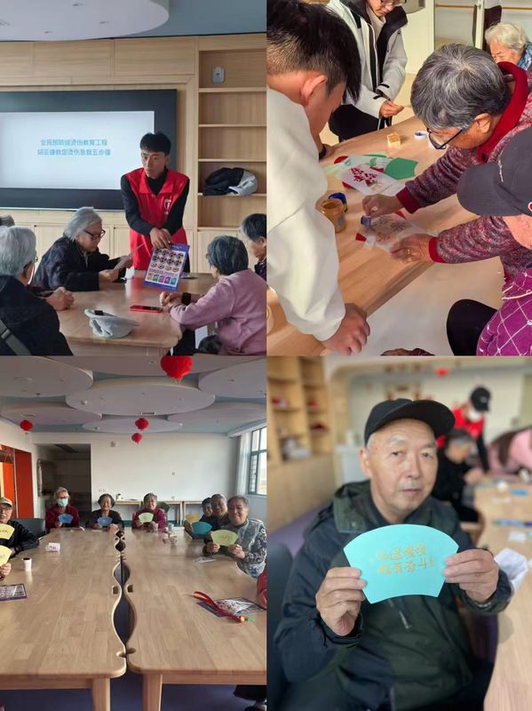本次志愿活动精心设计了三个环节,八组志愿者分工协作,让活动有序开展、亮点纷呈。在防烧烫伤宣传环节,老人们端坐静听,认真汲取安全知识,宣讲结束后的互动问答中,大家踊跃发言,现场氛围热烈;拓印小挂画环节里,志愿者向老人们详细介绍了拓印的历史渊源与操作技巧,长辈们兴致盎然,拿起材料专注创作,笔下既有寓意美好的文案,也有生机盎然的花卉,每一件作品都饱含着对生活的热爱;最后的互动交流环节更是温情满溢,老人们打开话匣子,与志愿者们分享过往岁月里的故事,从抗日战争到抗美援朝的峥嵘岁月,再到日常的生活点滴,志愿者们静静倾听、细细回应,时光在欢声笑语中悄然流逝,离别时老人们的恋恋不舍,成为了彼此心中最珍贵的印记。
