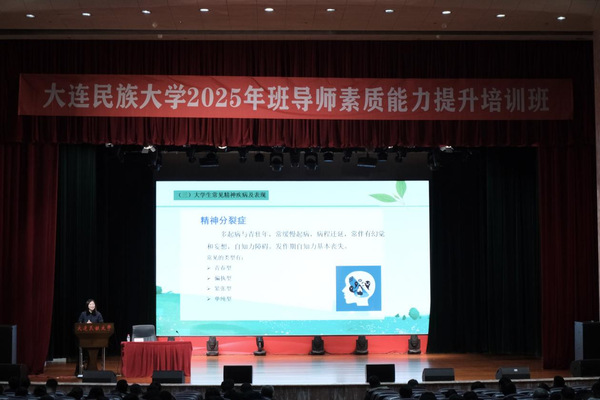 12月14日,应大连民族大学学生处邀请,我校心理健康教育中心主任郭双教授应邀为大连民族大学2025年班导师素质能力提升培训班授课。