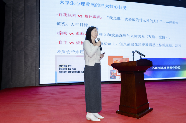 在外国语与国际教育学院2025级学生线上家长会上,我校心理健康教育中心副主任王莉分析了大一学生可能面临的心理适应问题,强调了家庭理解与支持的重要性。